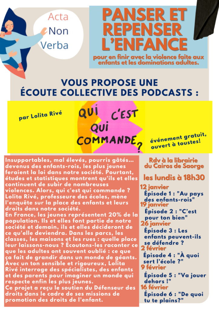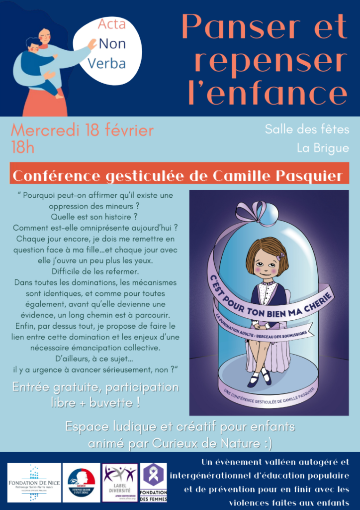 L’association Acta Non Verba a pour but de libérer la parole des victimes d’actes de maltraitance au moyen de tous types de support (site internet, presse écrite, radio, télévisée ou tout autre moyens) au travers d’événements, tout en favorisant la prévention au travers de différents outils d’éducation populaire et prônant la défense des humains.